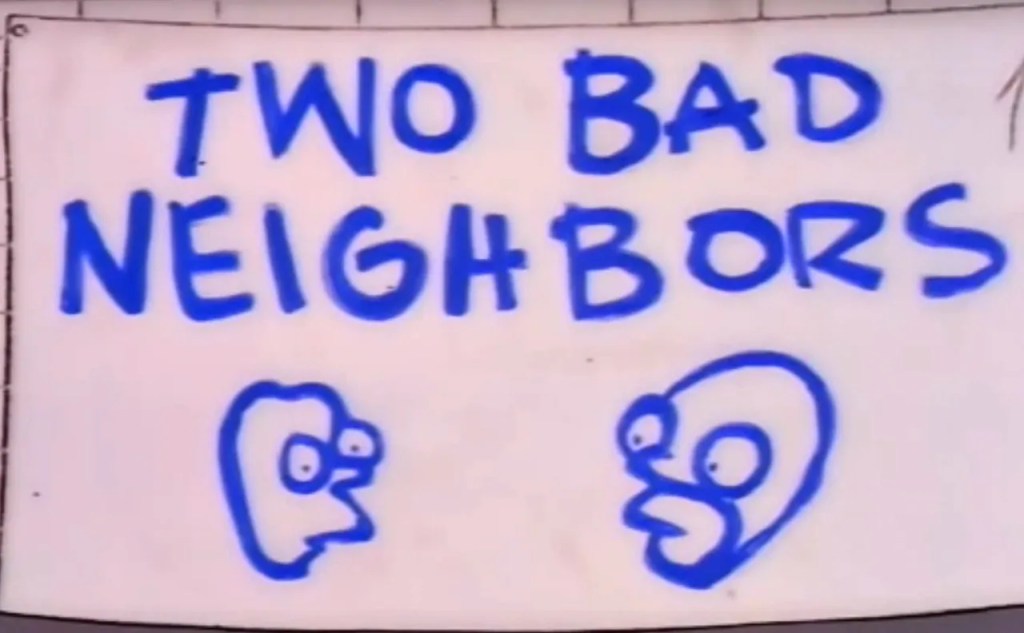 It’s like The Simpsons episode where George H.W. and Barbara Bush move across the street and tensions rise that Bush puts up a Two Bad Neighbors sign and people don’t understand who it’s implying. It’s an in-joke that you have to explain to people who are supposed to be in on it. In other words, it makes no sense.