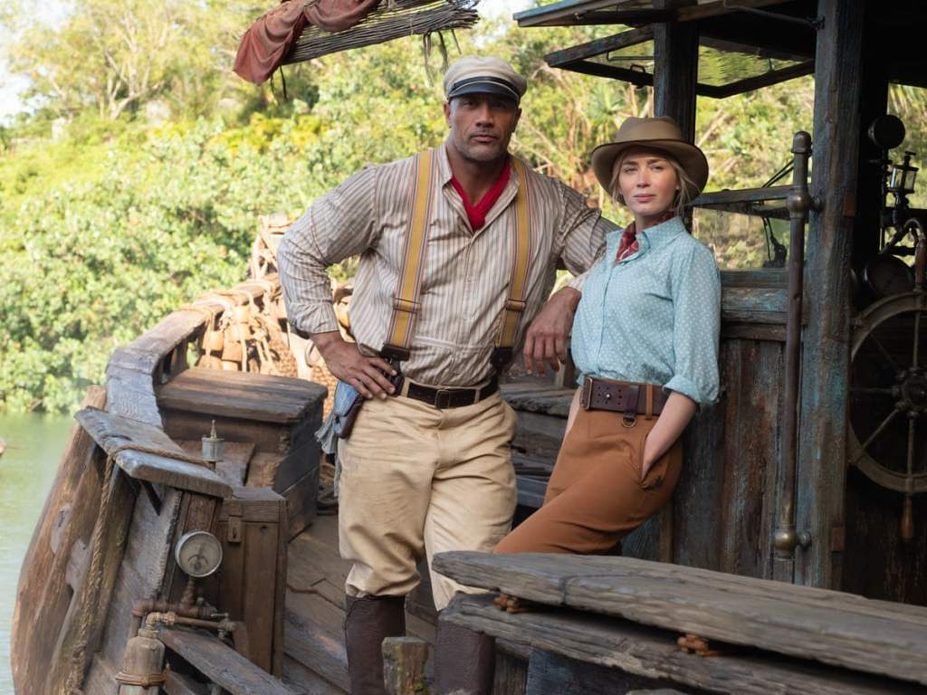 Set in 1916, Johnson plays the typical struggling to survive tourist boat skipper Frank Wolff, who is indebted to harbor master Nilo Nemolato (Paul Giamatti) at a popular spot along the Amazon in Brazil. As always, Dr. Lily Houghton (Emily Blunt) mistakes him for Nilo and she hires him, then fires him when discovering the truth, but something happens showing her he’s really good at what he says, and she rehires him. They squabble back and forth in the typical fashion that Michael Douglas and Kathleen Turner did.