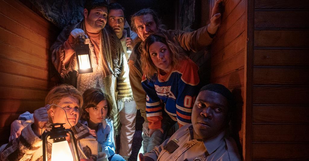 A blizzard takes out all the power of the town as well as access to the Internet. One of the townspeople’s toy dog is attacked by an unknown assailant. Everyone gathers in the nearby lodge where they quickly begin to point fingers at each other because they can’t get along. This has been done before and typical of a lot of horror comedies. It’s almost like The Thing meets Northern Exposure as well as having the political/social satire of a George A. Romero movie. But it’s dialed up so much that is doesn’t work and everyone overacts.
