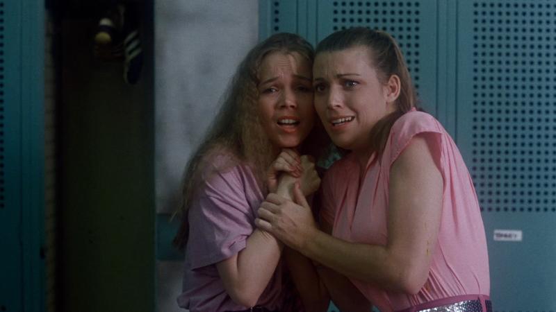Since there was a small budget, the film production ran into an issue with track student athlete Delores (Linnea Quigley). A different actress appears in an earlier scene and they used a fake prop of her head for a scene later. However, the acress refused to do nudity, so Quigley was cast instead,. If you know anything about Quigley, she is no stranger to taking off her clothes in movies like The Return of the Living Dead, Night of the Demons and Silent Night, Deadly Night. But they couldn’t reshoot too many scenes so two actresses played the same character even though they could’ve just had someone say over the audio, “So-and so isn’t here.” That would have been my guess.