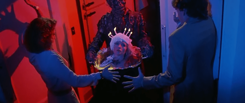 The fourth story, “The Crate” is also based on a King short story. It’s set during late summer at the fictional Horlicks University, possibly the same one Jordy was interested in selling the meteorite to. A janitor, Mike Latimer (Don Keefer) discovers a wooden crate hidden behind the grate under a staircase in a basement of a building. It’s from an artic expedition in 1834. He calls a professor Dexter Stanley (Fritz Weaver) who is at a neary social gathering with his colleague Professor Henry Northup (Hal Holbrook), whose loud and drunk wife, Wilma (Adrienne Barbeau) is busy making a scene by screaming to any and everyone, “Just call me ‘Billy!'”
