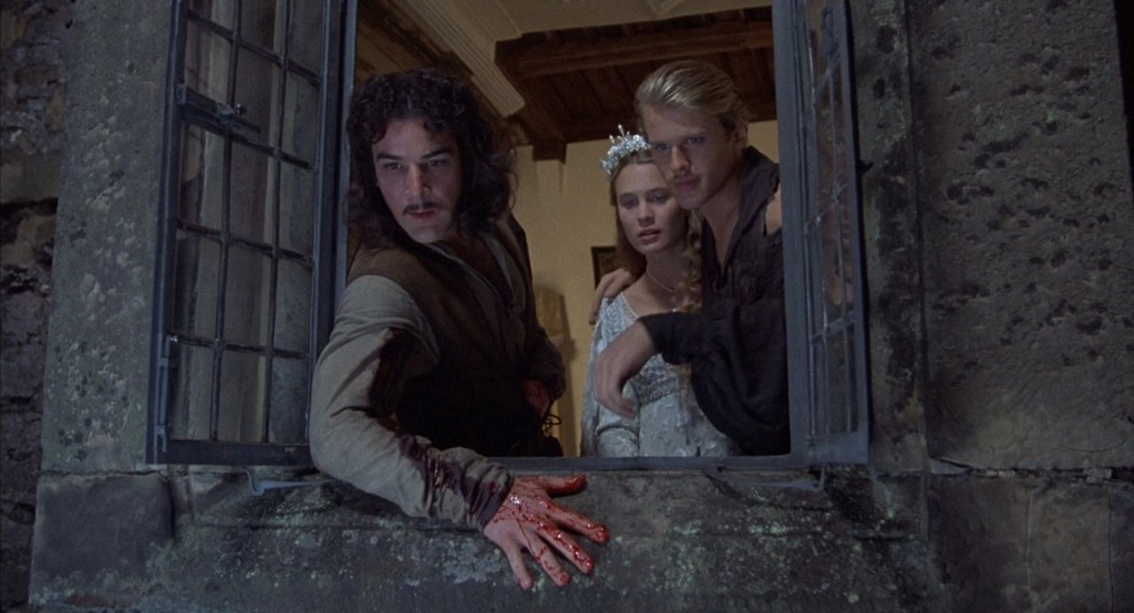 Every cast member seems perfect. Sarandon is slimy and calculating enough as the evil prince but able to make him a little likeable. It has been reported Reiner intended to cast Danny DeVito as Vizzini as the character is a Sicilian, but I think that would be a distraction. Shawn talking with a slight lisp fully embraces the narcisssistic character and it’s probably his most famous role next to Rex in the Toy Story movie. Elwes with his thin moustache fits perfectly in his role. He also knows enough to deliver his dialogue in deadpan delivery. Patinkin more known for serious roles pulls off some laughs throughout.