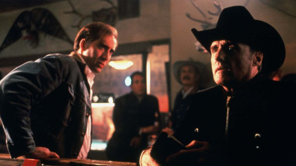 The plot revolves around Michael Williams (Nicolas Cage), a former Marine with a bad leg, that arrives in the desolate winter Wyoming praire lands hoping to get a job on an oil rig. An old friend has assured him it’s a done deal but when the supervisor hands him an application to fill out “for formalities,” Michael can’t tell a lie and metions his bad leg. And he doesn’t get the job even when his friend tells him he should’ve kept quiet. Michael tells him it wouldn’t have seemed right.