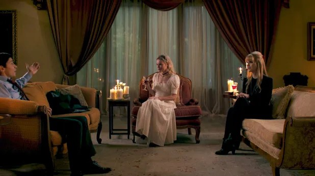 They get to know each other some and begin to make out before Mina’s sister, Lucy (Gia Corvatin), appears in the room. And from there if you haven’t already guessed what’s about to happen, look at the two names of the sisters and ask yourself, what other famous horror story involves a castle and two woman named Mina and Lucy? This might have worked better as a short movie. I think one online review I saw said it’s a Tales from the Crypt story stretched too far out and I agree.