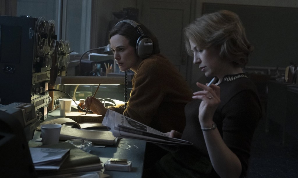 Of course, since it’s set in Boston, most of the men are portrayed as a generation removed from being knuckle draggers as they mock and lie about journalists Loretta McLaughlin (Keira Knightley) and Jean Cole (Carrie Coon) who worked for the Boston Record American. It was an era in which manly man handled the crime beat while women like them handled the lifestyles beat, reporting on social events and the Sweet Adelines. From the start, we see Loretta isn’t part of that and she is able to convince her editor, Jack MacLaine (Chris Cooper wearing the typical tired newspaper editor clothing of suspenders over a buttoned down shirt that’s seen better days) there’s a connection to a few homicide cases.