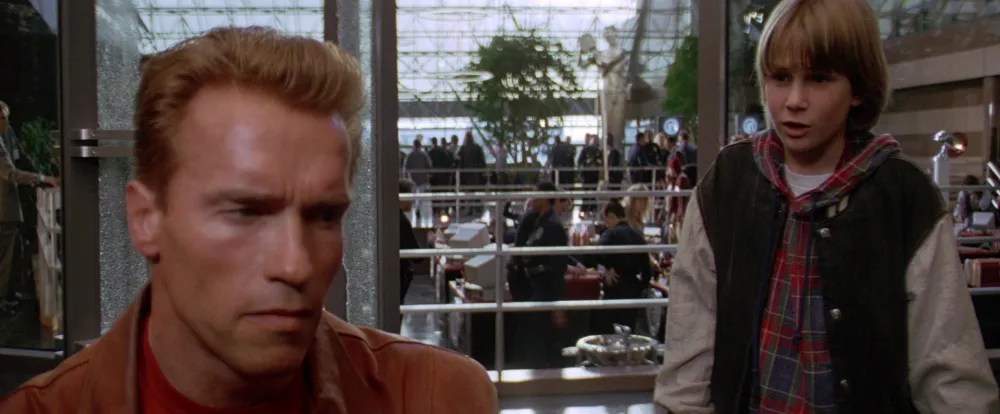 Noonan gives a good send-up of his roles as bad guys, most notably in Manhunter and even The Monster Squad. Later, at a movie premiere for Jack Slater IV, he appears as himself looking like a normal man in a tuxedo. It’s these little moments and others that make Last Action Hero worth watching as people mistake Slater for Schwarzenegger. Even M.C. Hammer, who’s star was fading by this time, manages to pull off a great laugh as he mistakes Slater for Schwarzenegger saying how he wants to do the whole soundtrack for the fifth Jack Slater movie.