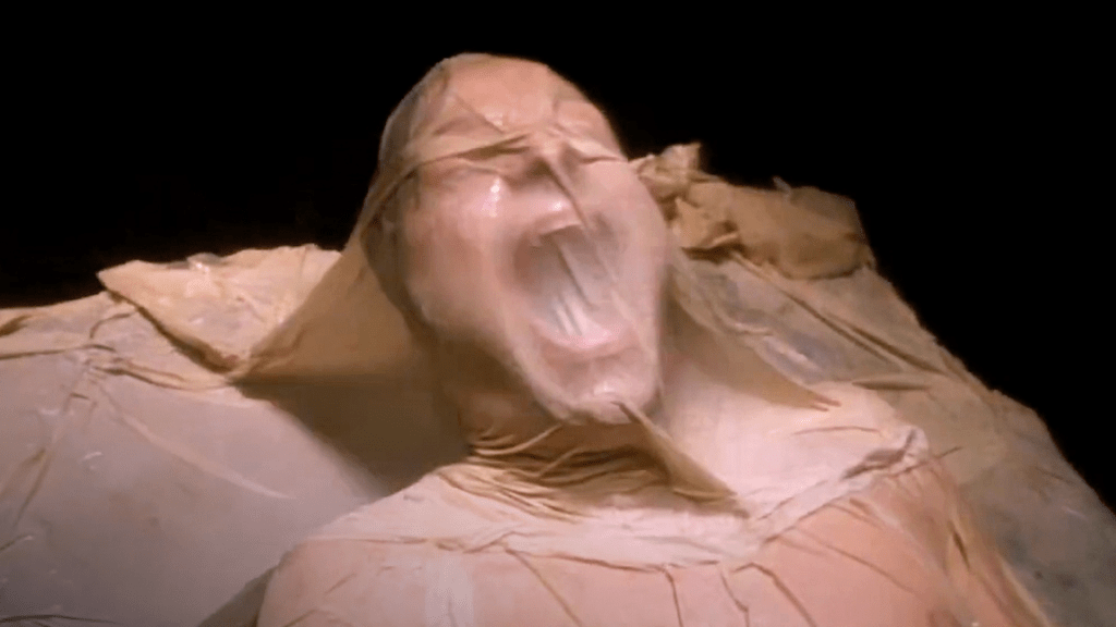 As for the actual abduction, it is amazing and it’s a shame more wasn’t shown as Walton wakes up in an embryonic pod in a spaceship interior where there is zero gravity. He then is attacked by three alien bald creatures which one reviewer committed resembling John Gielgud and I can’t unsee it. It’s about 15-20 minutes long and it is terrifying so much you wish director Robert Lieberman and writer Tracy Torme went harder for an R rating. The fact Lieberman, who passed away earlier this year, sandwiched this movie in between the family kids’ movies All I Want for Christmas and D3: The Mighty Ducks shows he has some impressive talents.