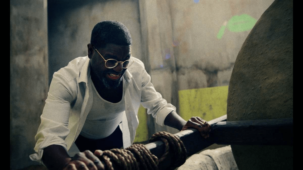 The Mill could’ve worked better as an episode of Black Mirror because it falls apart during the half-way mark. Joe (Lil Rel Howery) walks up in an open-air prison unsure of how he got there. He’s dressed in a suit and tells anyone who will listen he works for the Mallard Corporation. In the center of the confindment is a mill that Joe and others at the prison are expected to push each day for about 16 hours.
