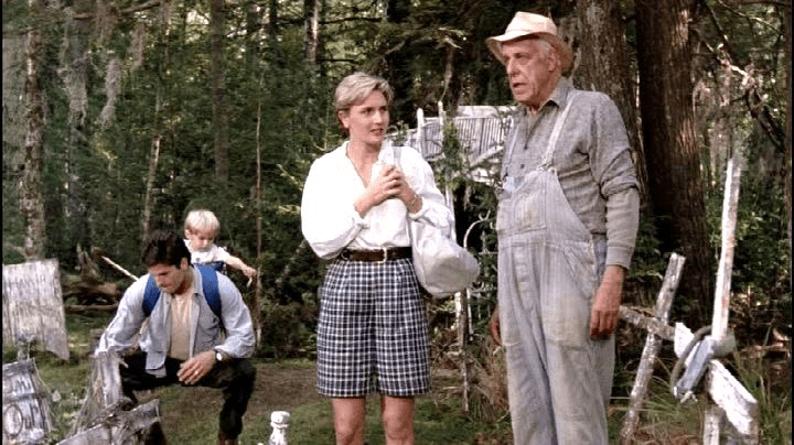 And when he first goes toward the busy road, the Creed’s neighbor, Jud Crandall (Fred Gwynne) is able to scoop him up and introduce himself to the Creeds. Gwynne, most famously known as Herman Munster, fills the role of an aging New England country man to a T. He wears overalls and smokes like a chimney. He spends more time out on his front porch than he does in his own house. Gwynne also knows how to lay on the accent enough that it sounds authentic. Born and raised in New York City and a Harvard graduate, he knows how to sound like he was born and raised in Maine.