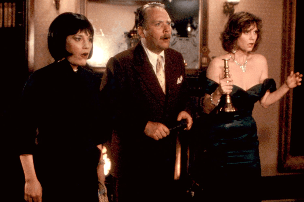 (SPOILER ALERT!!! Mustard actually drops a hint early on to the identity of the killers. During the dinner, he quotes Rudyard Kipling by saying, “The female of the species is deadlier than the male.” In the first scenario, it’s Miss Scarlet (Leslie Ann Warren) and the maid, Yvette (Colleen Camp) who are the killers. In the second scenario, it’s Mrs. Peacock (Eileen Brennan). In the third and actual scenario, it’s all the main characters with the exception of Mr. Green (McKean), who is an undercover FBI agent. Thus the majority of the murders are committed by the woman characters.)