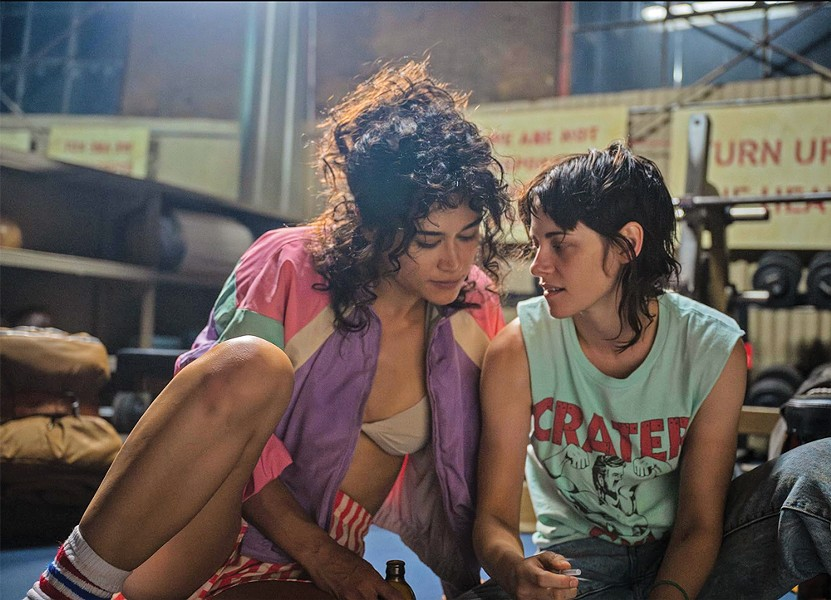 Set in a New Mexico desert town possibly close to the border by a couple of hours, Lou (Kristen Stewart) is the gym manager of a dingy fitness gym her seedy father, Lou Sr. (Ed Harris) owns. He’s the local crime lord who never raises his voice but speaks in a tone that tells you he’s not afraid of putting a bullet in your head without hesitation. He has long hair hanging down to his shoulders from his bald top. Lou Sr. is obviously one of those guys who doesn’t care how he looks and dares someone to say something. He’s got the local cops on his payroll to help him do his dirty work.