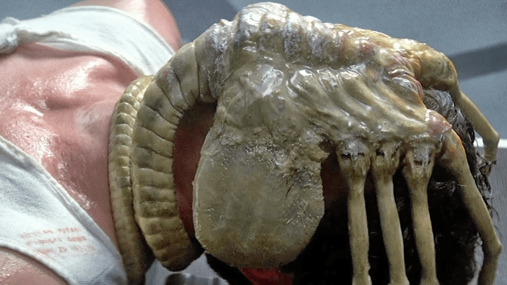 Kane wakes up before they have to go back in stasis so they all decided to eat before. However, while they’re doing this, Kane starts convulsing and a small creature bursts out of his chest killing him. One thing particular they did that makes the chest-burster more disturbing is by having pieces of Kane’s inner organs and blood covering the creature. It’s been highly debated over the years that the cast was unaware of what would happen. A shot of fake blood spraying Cartwright by accident as she screams stayed in as she was not prepared for that. Considering how a difficult scene would be set up and shot, it’s highly unlikely the cast went into it unaware of what all would happen.