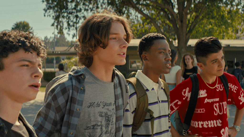 Benj has to carpool with a senior, Ruby (Thomas Barbusca), who does drugs and sells OTC meds to skateboarders as MDMA. His friends, Eddie (Ramon Reed), and Connor (Raphael Alejandro), are also wanting to make a name for themselves, but Eddie is frustrated over the loser boyfriend dating his mom. And Connor immediately gets called “Fetus” by upper classmen. They are fascinated with the popular Katrina Aurienna (Loren Gray), who has half a million followers on social media.