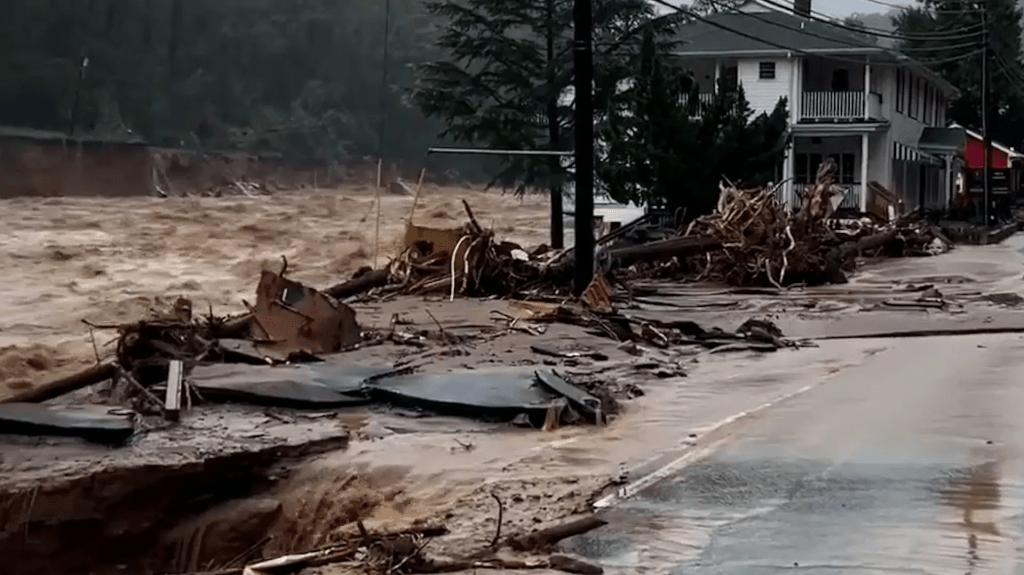 And the Ashville, N.C. and surrounding areas are heavily flooded and buildings are damaged. Asheville is in the Blue Ridge Mountains in Appalachia. It’s more than 300 miles east of the Wilmington, N.C. and about 2,134 feet above sea level. That’s six feet short of half a mile.