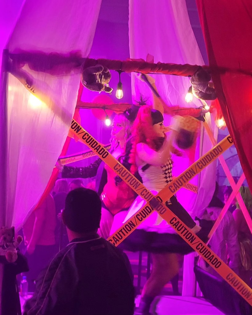 There was a Killer Klowns from Outer Space motif as the Sequoyah Ballroom was decorated with the deadly cotton candy cocoons and footage from the movie played on the screen as music blasted.