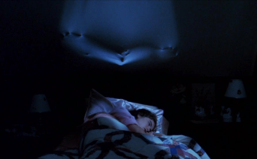 Tina invites Nancy and Glen over for a sleepover but her boyfriend, Rod Lane (Nick Cori), who has a history of criminal activities, shows up. Tina and Rod have sex but when she goes to sleep, she has another dream of Krueger who kills her in her sleep. Rod wakes up to see Tina struggling as cuts are made to her body and blood goes everywhere as Tina’s body is dragged by an unseen force up the wall and toward the ceiling.