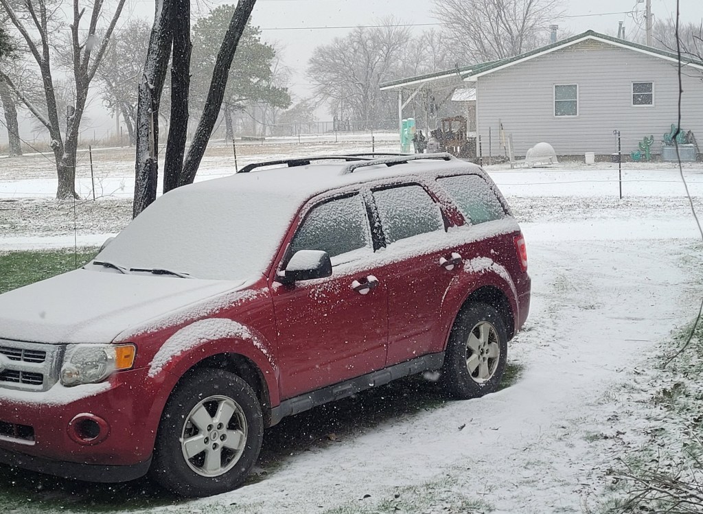 As I was leaving my stay in Tupelo, Miss. to get to Interstate 22 West, I was behind a snowplow truck and sand/salt spreader with the Mississippi Department of Transportation. Trucks on Interstate 40 through Arkansas had sleets of snow and ice on their trailer tops that were coming off. So, you don’t need that hitting your car if you’re traveling.