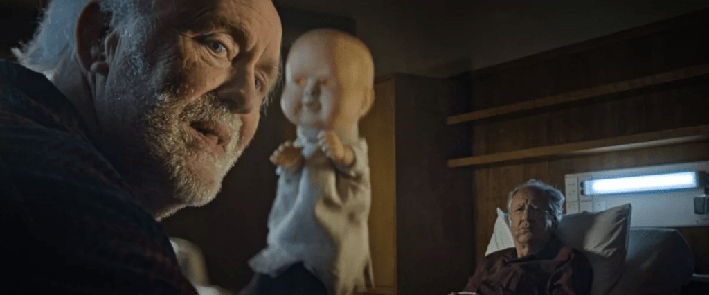 Lithgow plays Dave Crealy, an elderly man at a care home in New Zealand, who has become the bully. He steals food from the other patients and terrorizes them. Dave has gross rotting teeth that would make Austin Powers throw up in his mouth. He carries a hand puppet he calls Jenny Pen on him at most times. He’s managed to terrorized the residents because he knows what he can get away with and knows the staff are overworked and overwhelmed having to deal with frail and invalid people.