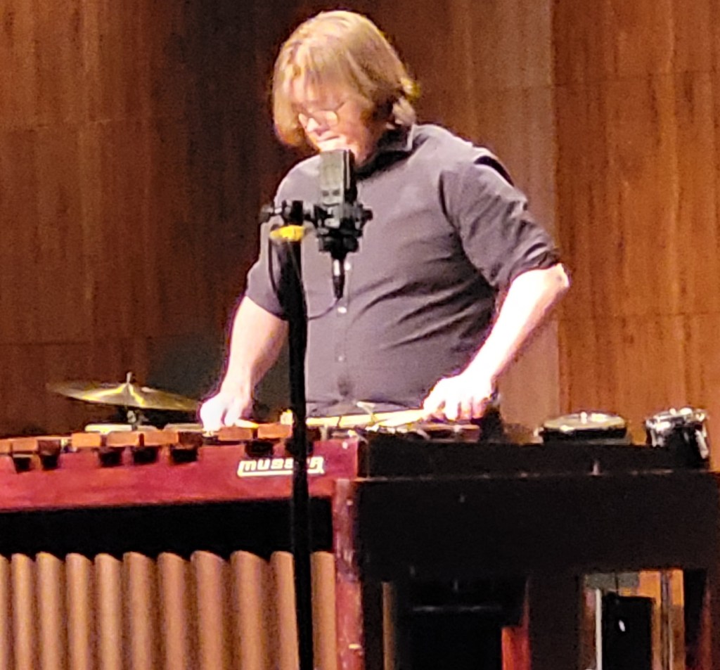 Then, Seth Gioletti performed a solo of “Michi” by Keiko Abe on a marimba. Zackary Hance followed with with “Morris Dance” by William Kraft on multi-percussion instruments including a snare drum, bass drum and a floor tom drum.