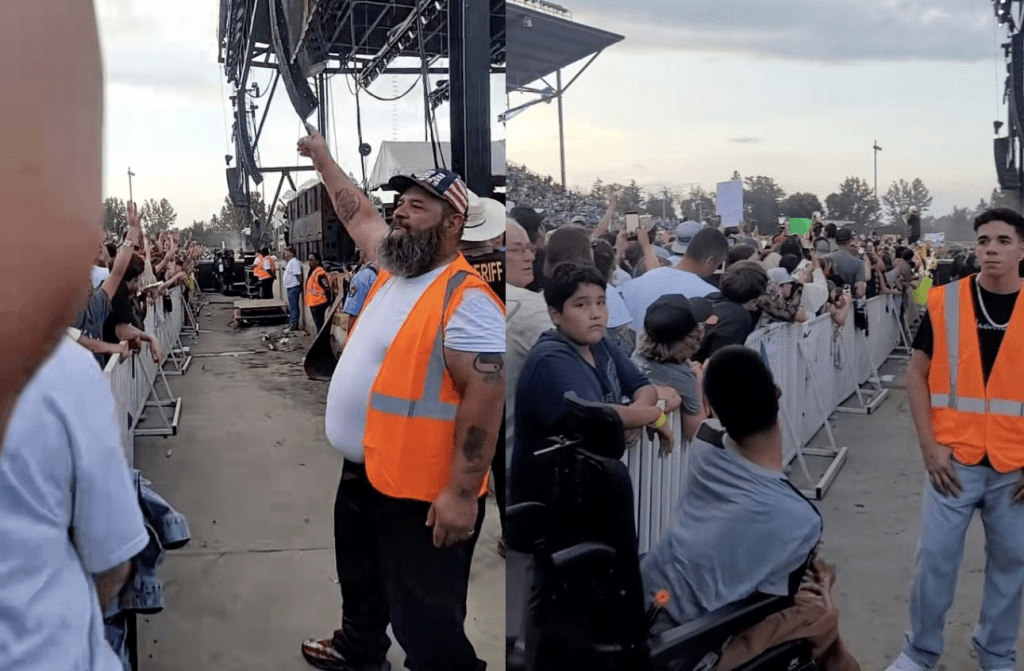 So, when Tony Demaree, who was a security guard at the North Dakota State Fair, saw someone in a motorized cart, he thought “This fella needs to be when he can see.” He moved the man, who hasn’t been identified as of this time, over the metal barricades but still kept him a good distance from the main stage just giving him a better vantage point. And everyone was having a great time as it’s been shown in cell phone video that has gone viral.
