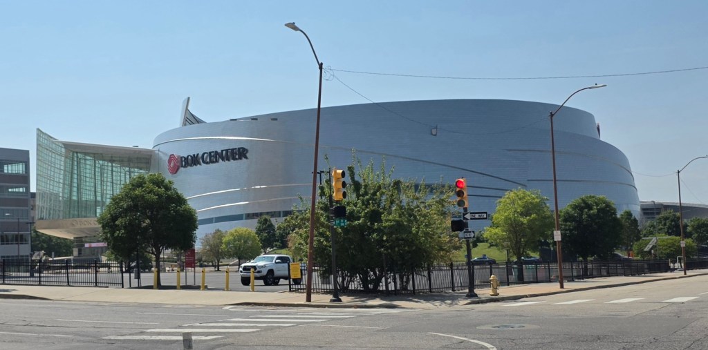 Here is a picture I snapped of the exterior of the BOK Center in downtown Tulsa. I’ve only been here once to see the Rockettes in 2008. The joke around town is how the arena is shaped like a Scotch tape dispenser turned on its side.