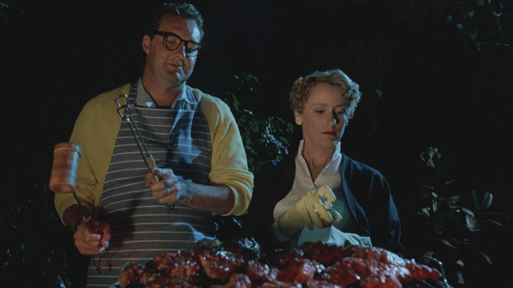 A movie like Parents works on the concept that young kids never do really think about where the food comes from, especially if they live in the suburbs. Released during the winter of 1989 and set during the summer and fall months of 1958, it’s about your typical WASP idealistic nuclear family. More people were moving from the rural areas to the suburbs. Mchael Laemie (Bryon Madorsky) is the awkward 10-year-old son of Nick (Randy Quaid) and Lily (Mary Beth Hurt), who have moved from Massachusetts to California. Nick works at the Division of Human Testing at Toxico developing Agent Orange.