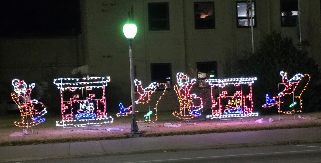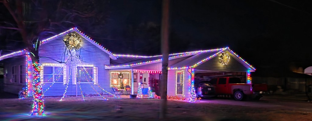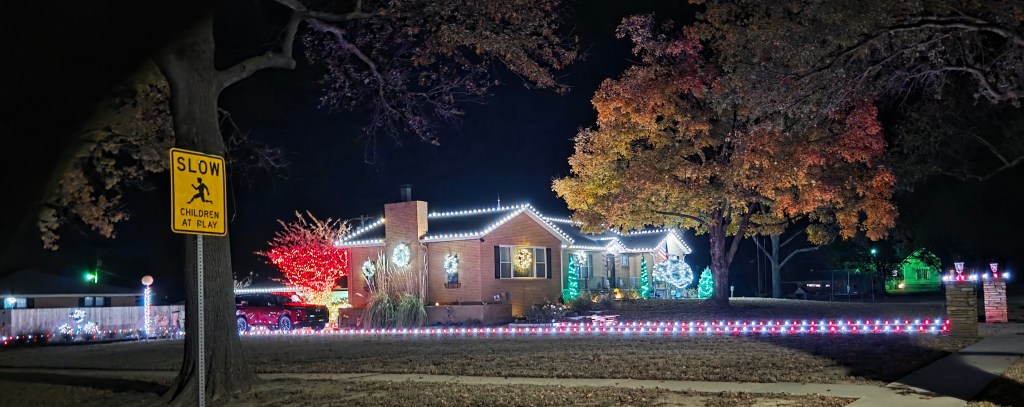 I haven’t put up my tree yet. But this weekend, my neighbors put up their Christmas lights.