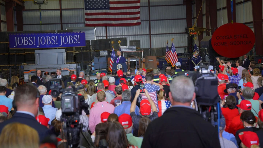 Recently, the President spoke at a factory mill in Rome, Ga. The news is trying to say that “thousands” of people turned out. If they are included people protesting, maybe so. But pictures don’t lie. There were only 300 max there and that’s being very liberal.