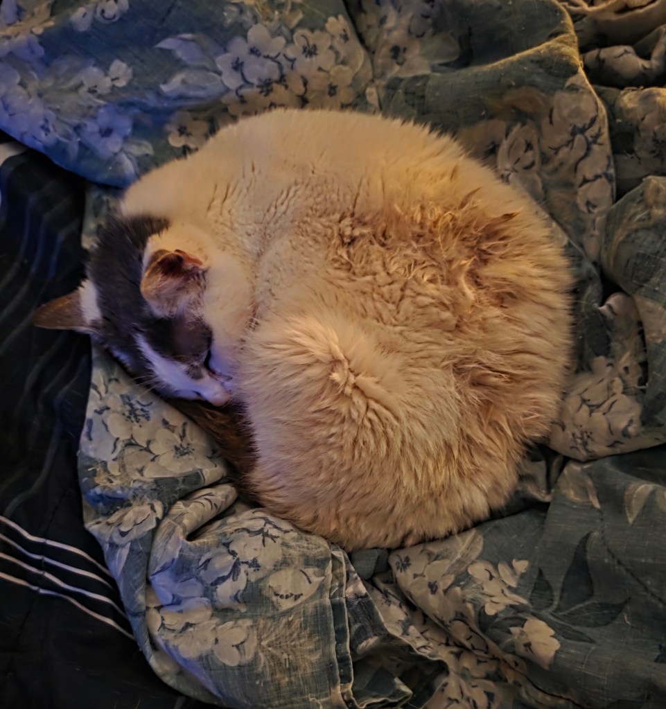 She’s been lonely for about the last couple of years as her brother, BeeBee, died all of a sudden during the summer of 2024. She’s the last of my inside cats and I don’t know if I will get anymore inside cats for a while after she goes.