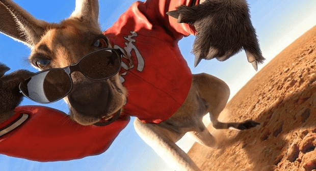 Now let’s address the elephant in the room or in this case the kangaroo as in “Kangaroo Jack.” Released in the middle of January 2003, this movie was presented as a slapstick family film of a talking and rapping kangaroo. But that’s not the case. The kangaroo barely appears at all in the movie. At 89 minutes with credits, the marsupial spends less than eight minutes on screen and most of the time he’s either alone in scenes obviously inserted during post or appearing in a CGI dream sequence.